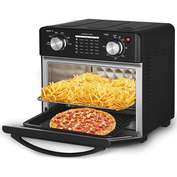 Cook InfiniPower quickly and evenly, air fryer cooking time (up to 60 minutes, dehydration for up to 12 hours). It is faster than a traditional oven, but has more crispy and more delicious results for all kinds of foods. Countertop oven 1500W high-power heating produces 90% less fat than traditional frying methods, with little or no oil. The top oven temperature is adjustable between 101F and 428°F, allowing you to fry a variety of foods.InfiniPower The air fryer oven will automatically cool the interior for a few minutes after each use.