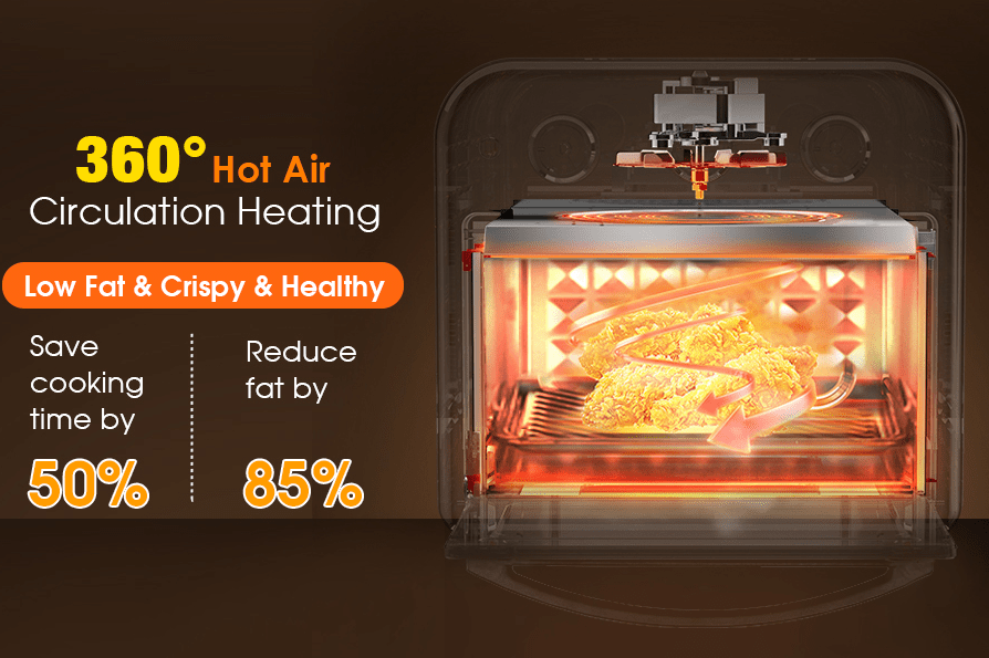 SKU: W100258542 25L Intelligent oil-free cooking air oven 16 quart XL size 1500W electric oven separated oil filter 360° air circulation timer and non-stick pan low fat cooking, mechanical knob, non-touch filter basket insulation anti-hot handle porous heat dissipation